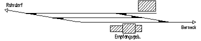 Der Bahnhof von Ebhausen lag im engen Nagoldtal zwischen höhergelegener Bundesstraße und Nagold eingezwängt. Er war mit einem Kreuzungs- und einem Ladegleis recht großzügig ausgestattet. Die Ausfahrt Richtung Altensteig führte durch eine enge Häuserschlucht. |